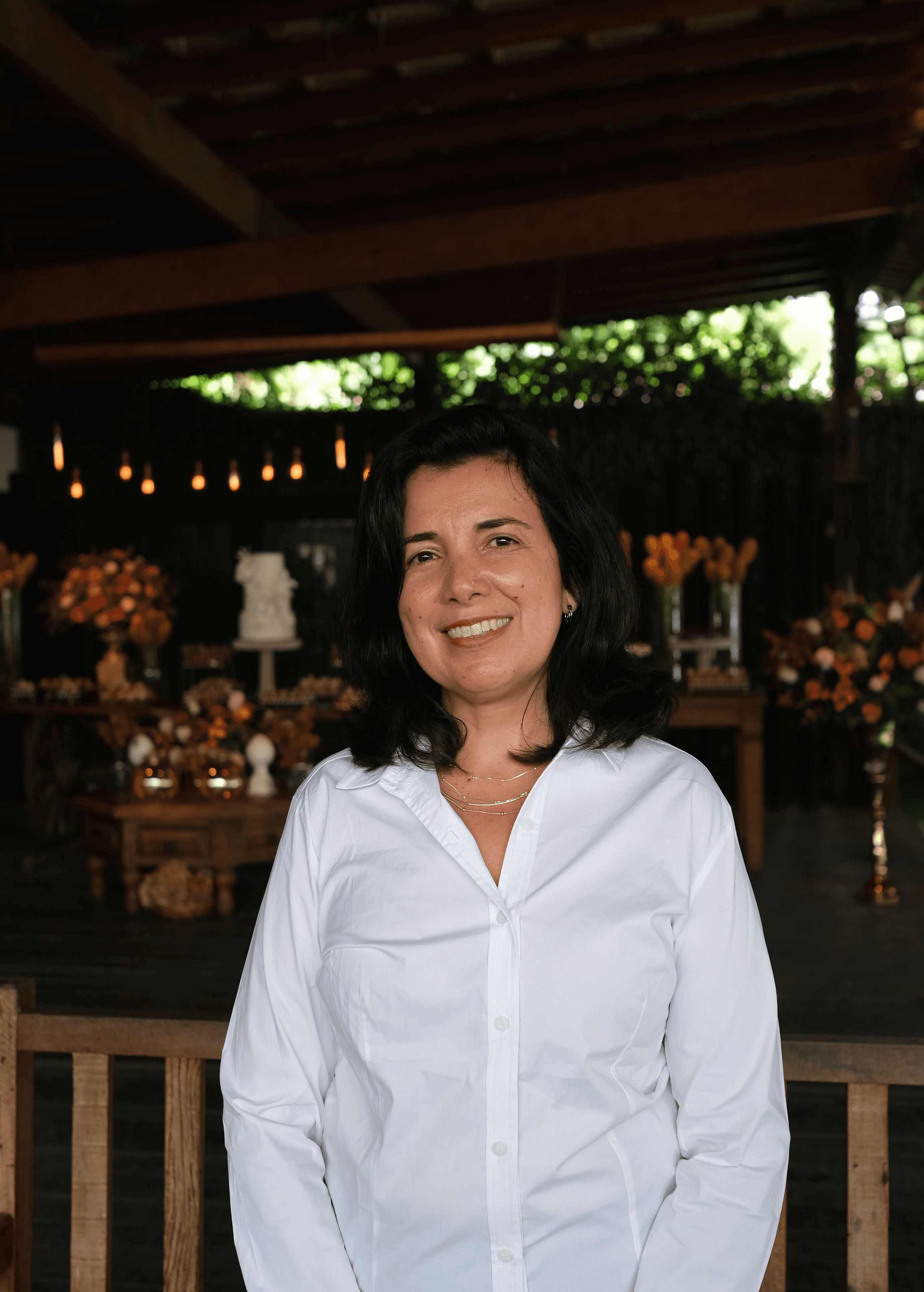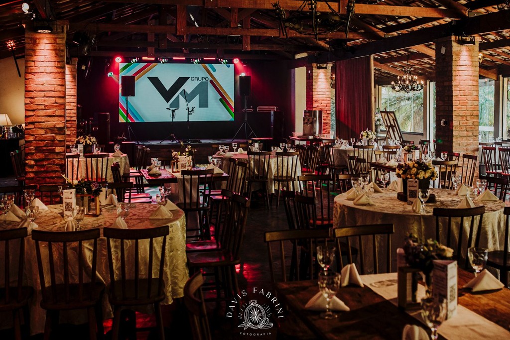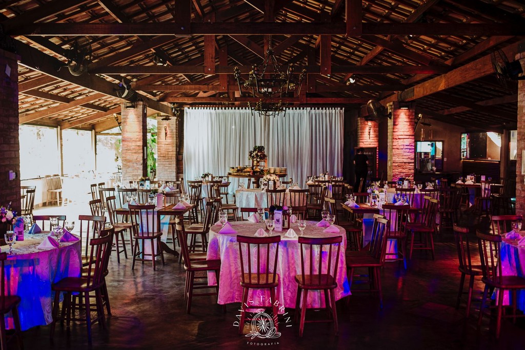 A decoração personalizada é por conta do cliente. O local inclui mobiliário e iluminação cênica.