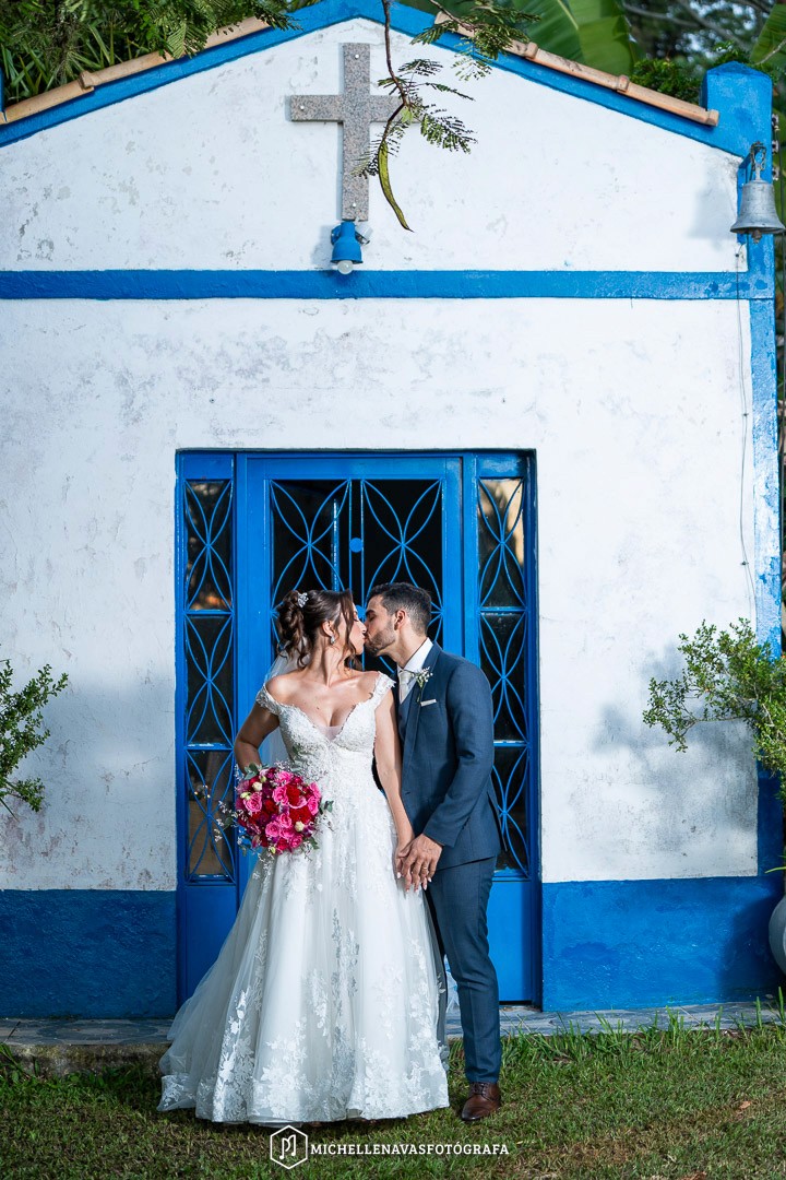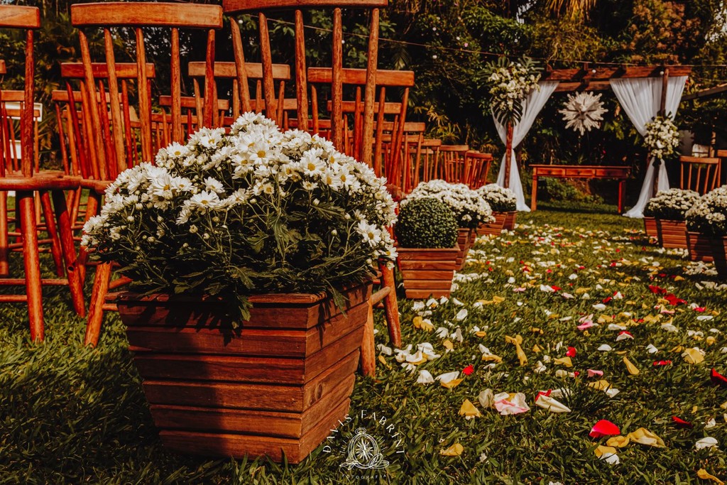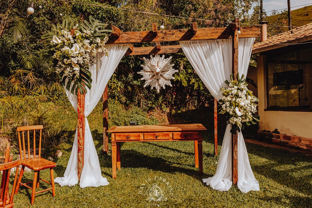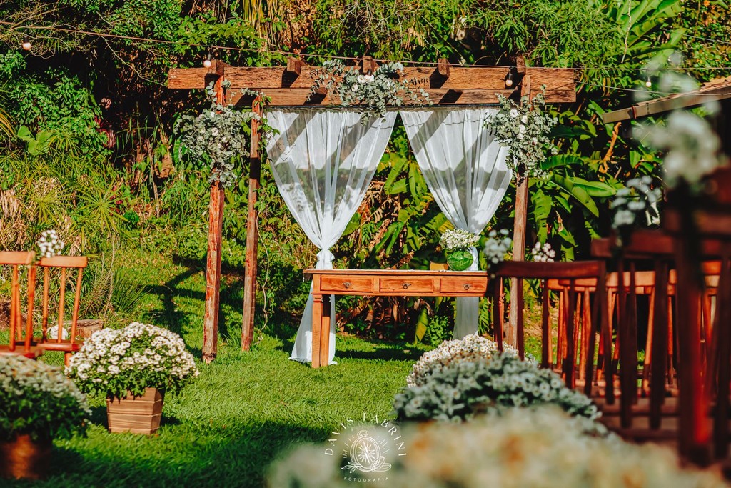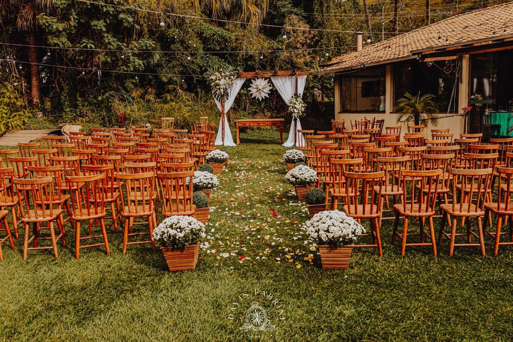 Cerimônia na capela estilo franciscano (150 sentados) ou ao ar livre, e recepção no salão — sem deslocamentos, sem estresse.