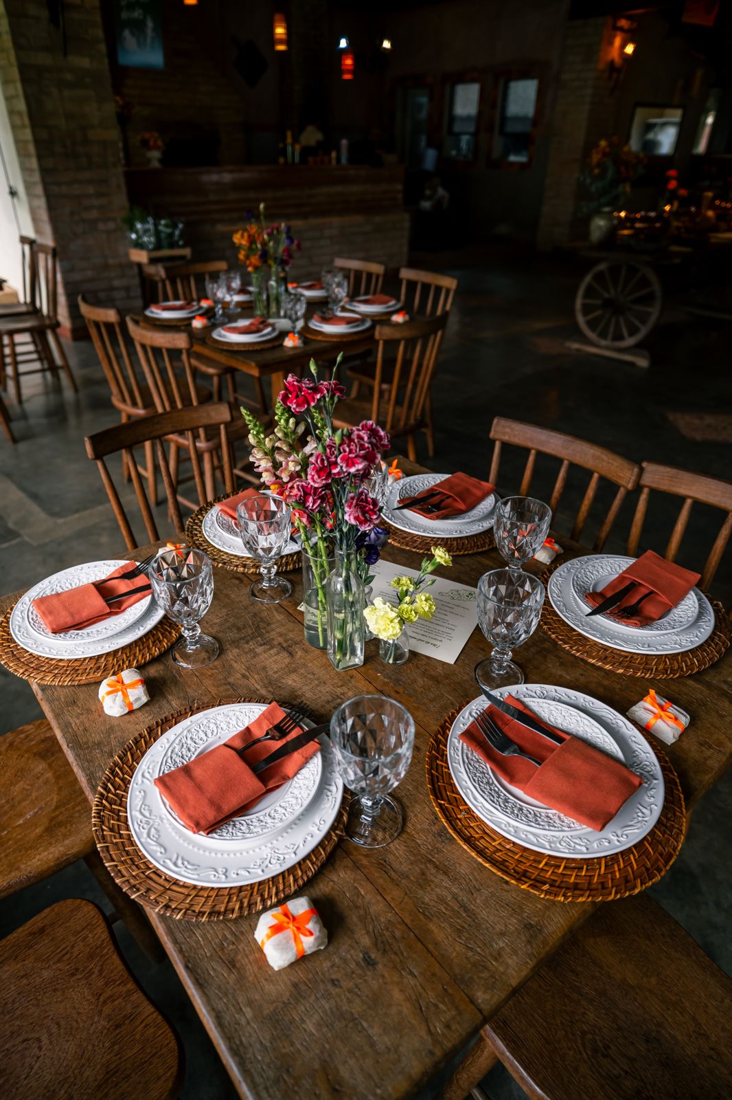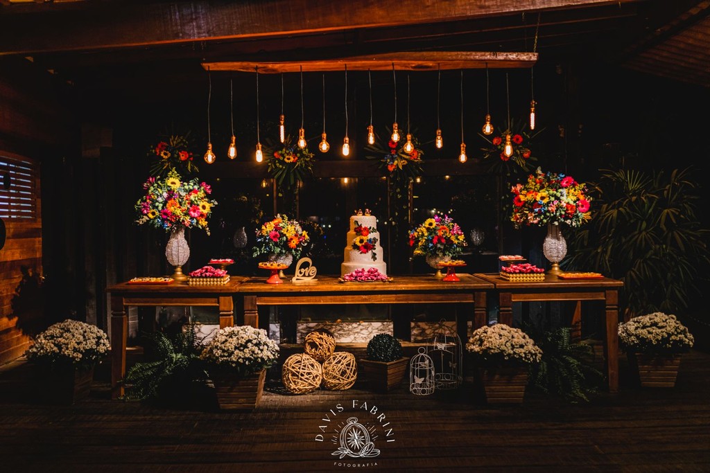 Fornecemos mobiliário em madeira de demolição. Toalhas não estão inclusas.