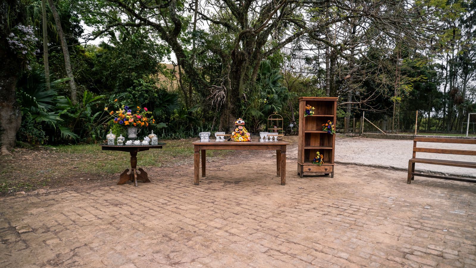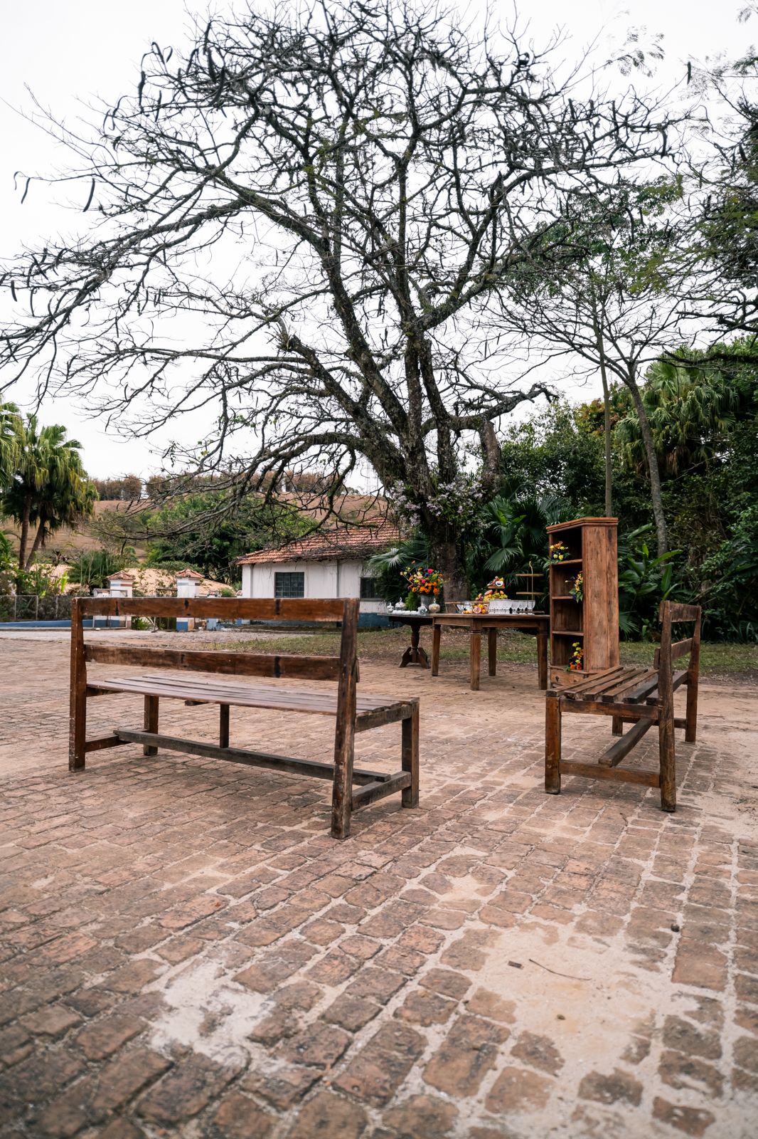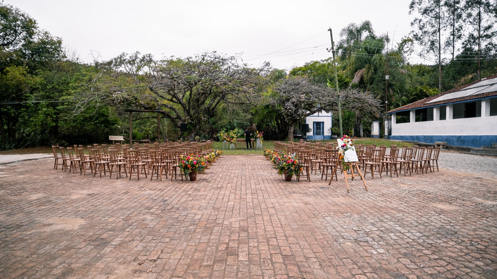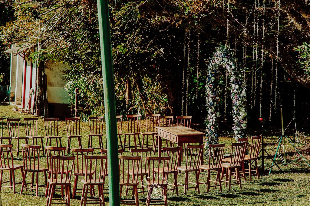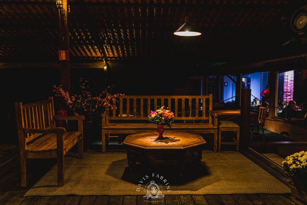 Produção — Você define fornecedores (buffet, bar, décor, música). Disponibilizamos cozinha equipada, mobiliário em madeira de demolição (toalhas por conta do cliente) e apoio operacional.