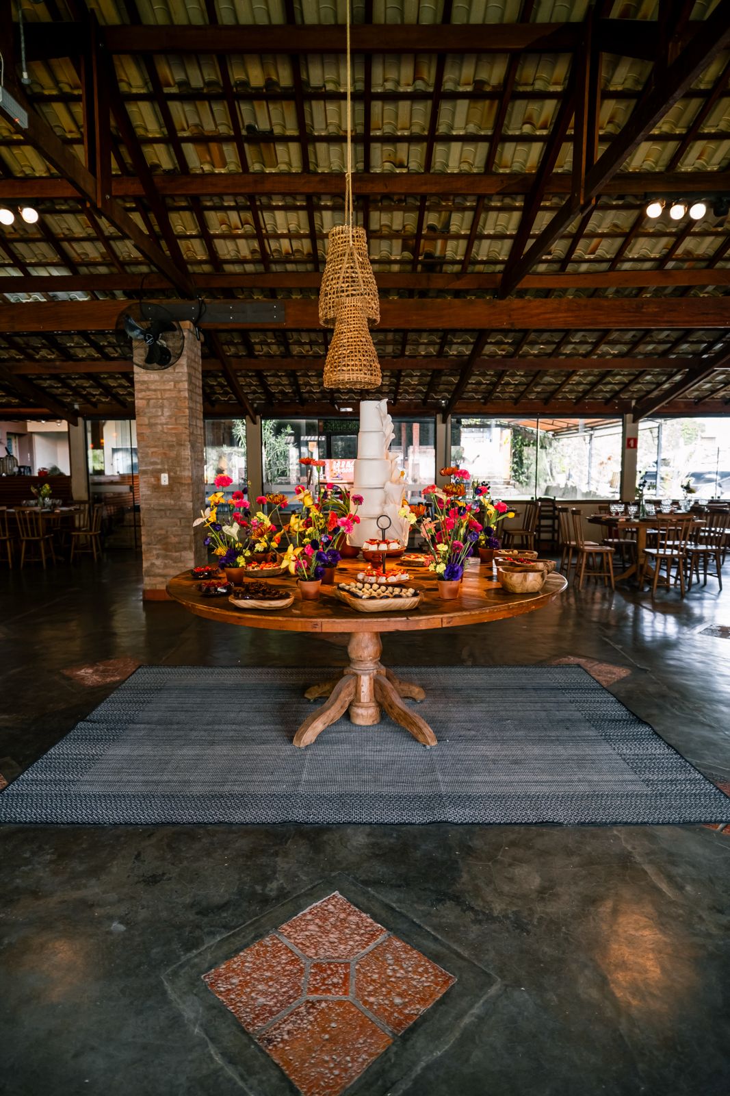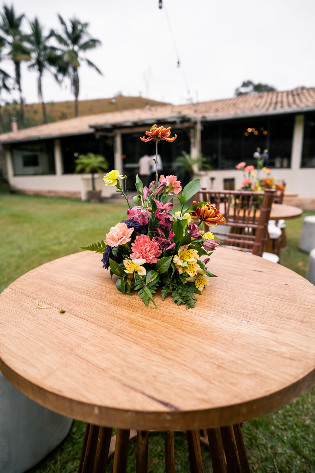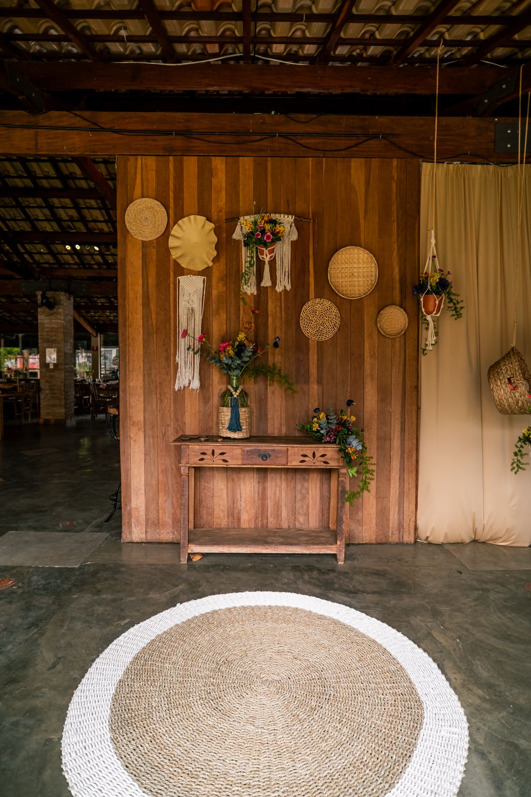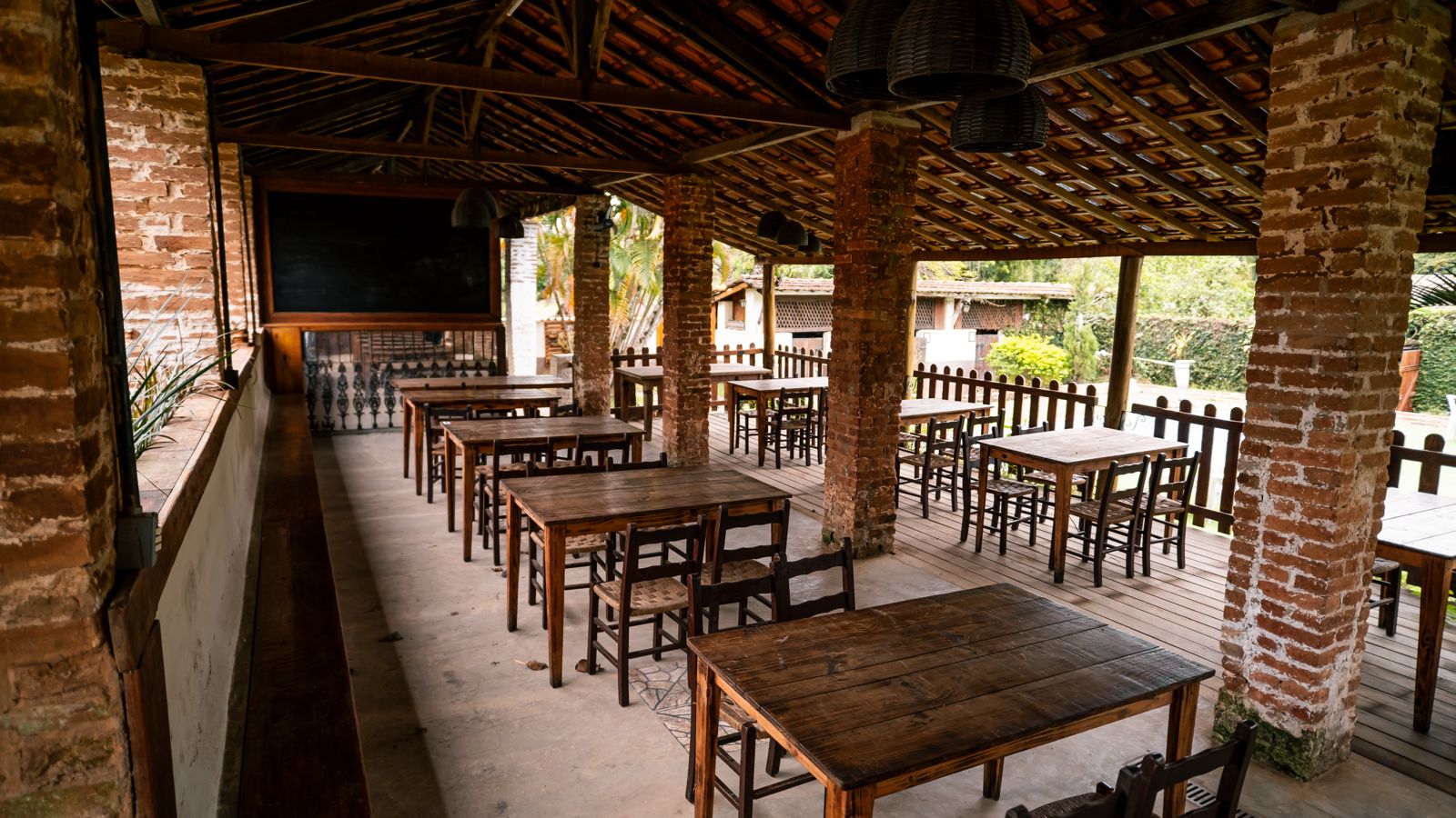 Produção — Você define fornecedores (buffet, bar, décor, música). Disponibilizamos cozinha equipada, mobiliário em madeira de demolição (toalhas por conta do cliente) e apoio operacional.