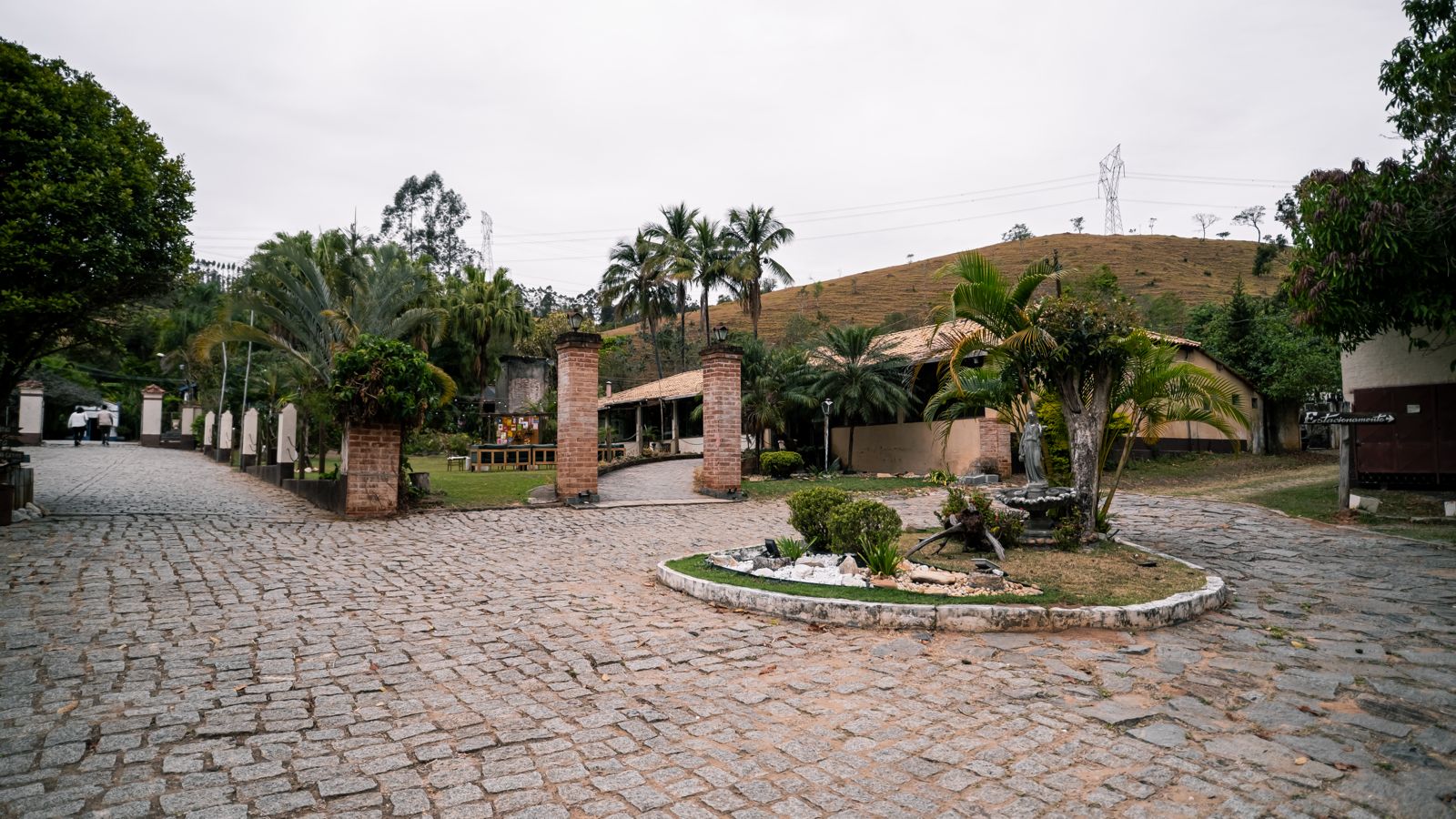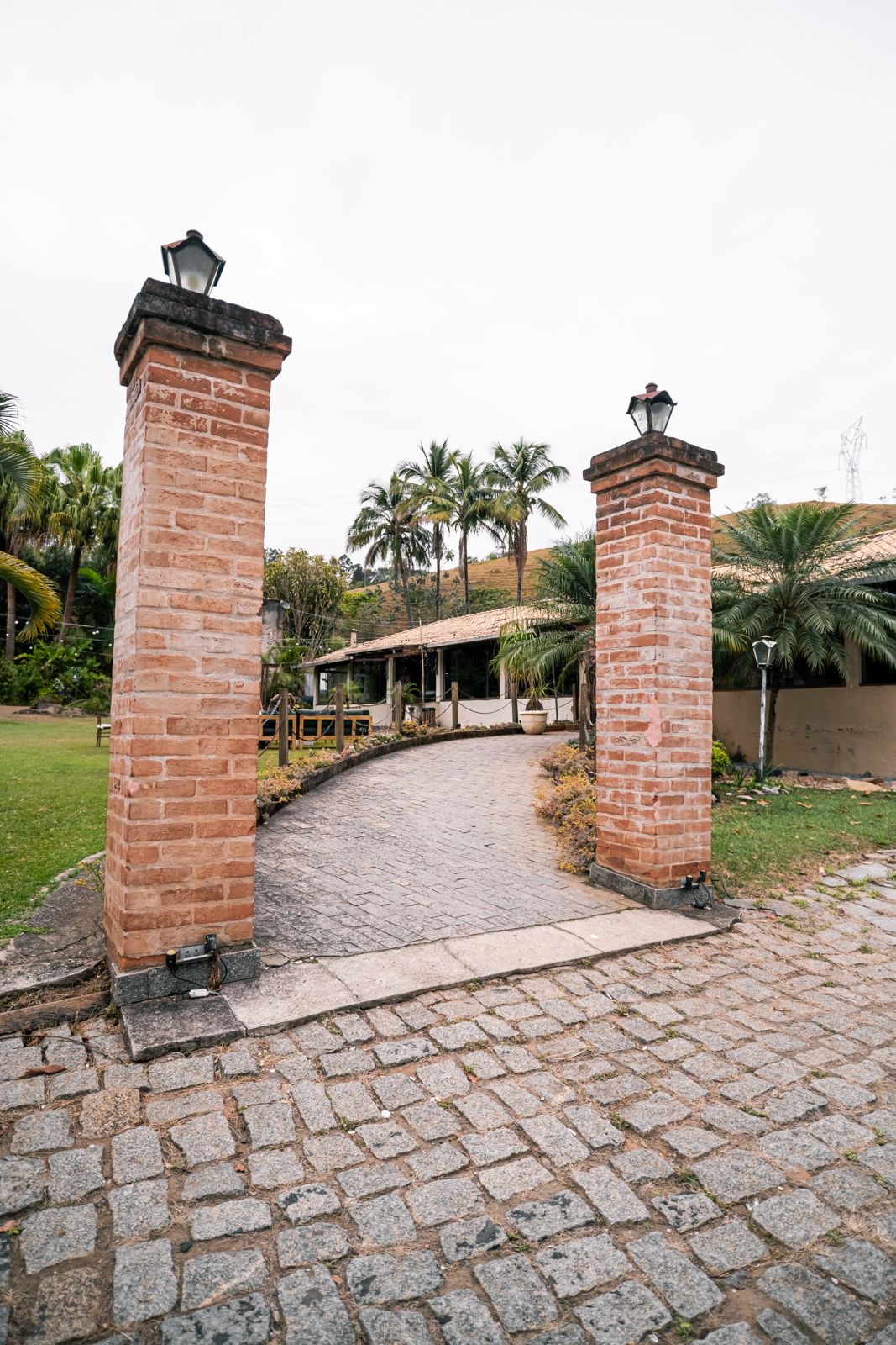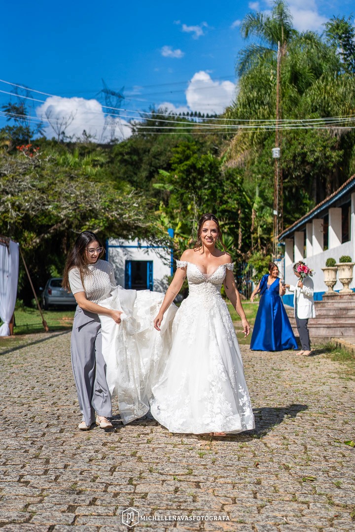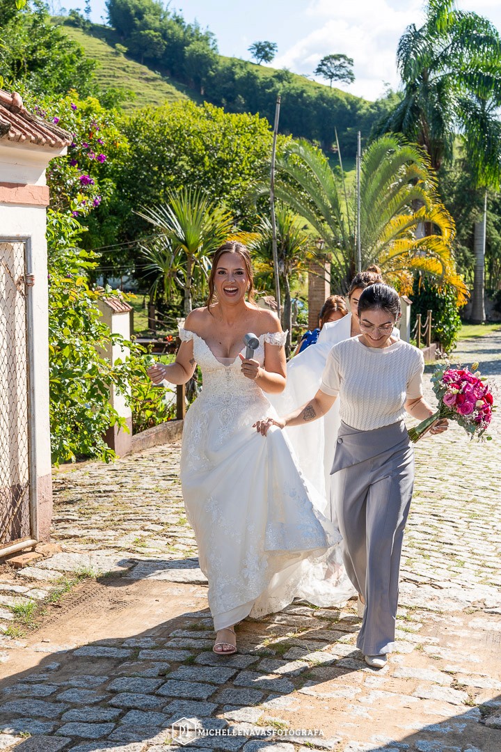 Sim. A fazenda tem capela e salões no mesmo complexo.