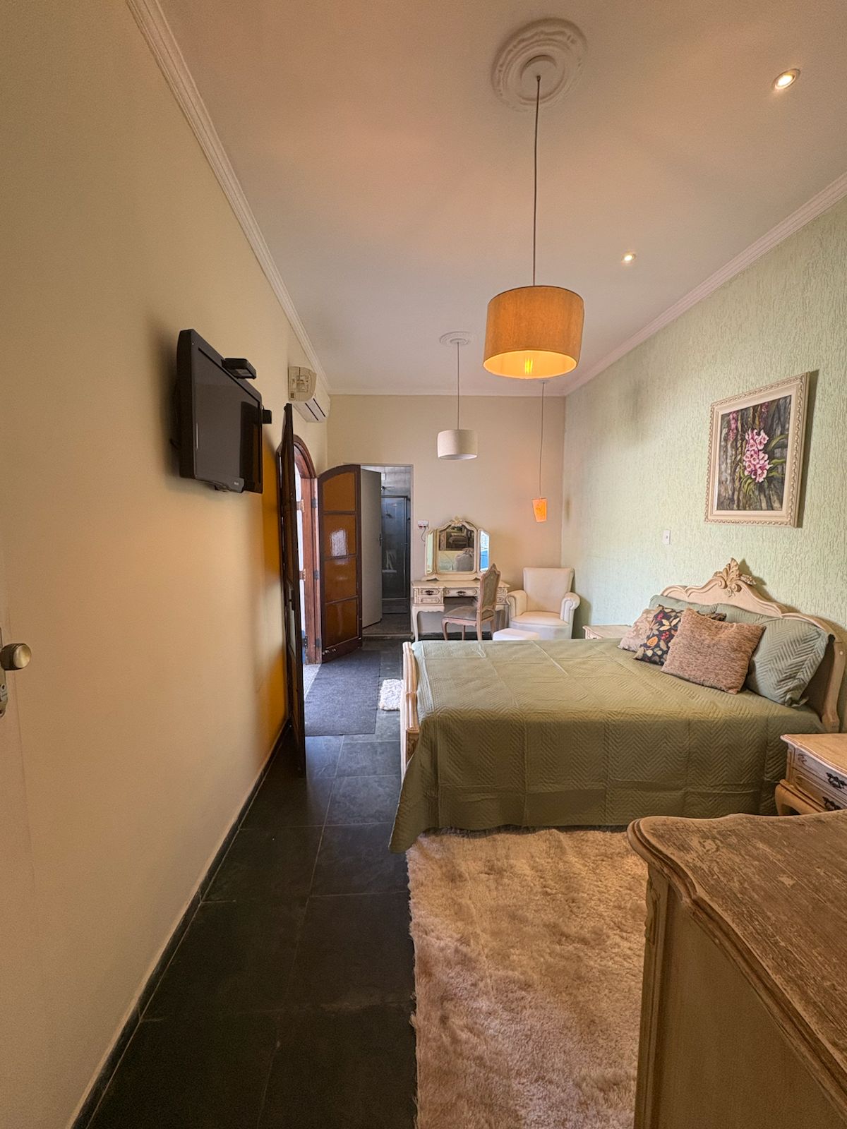 Suíte da noiva mobiliada com peças de época,