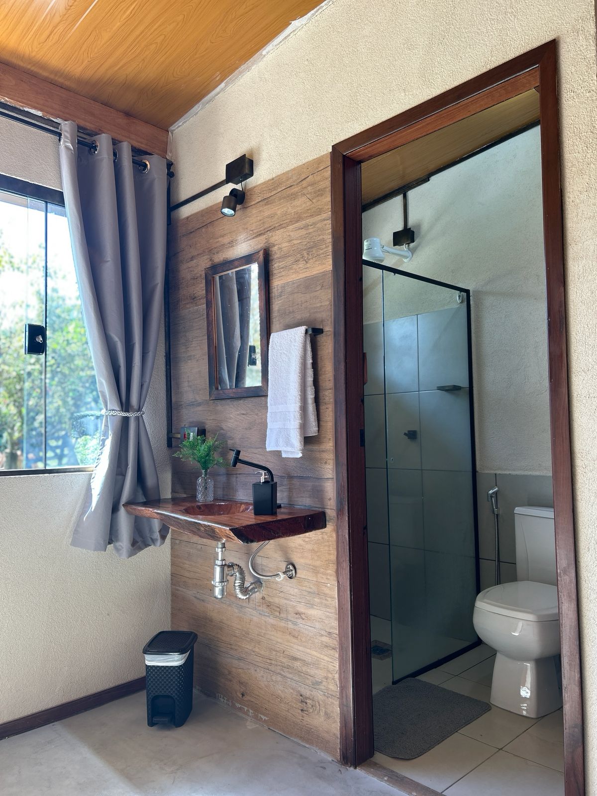 ar-condicionado, banheira de hidromassagem e deck com SPA aquecida. Opção de noite de núpcias com champanhe e café da manhã.
